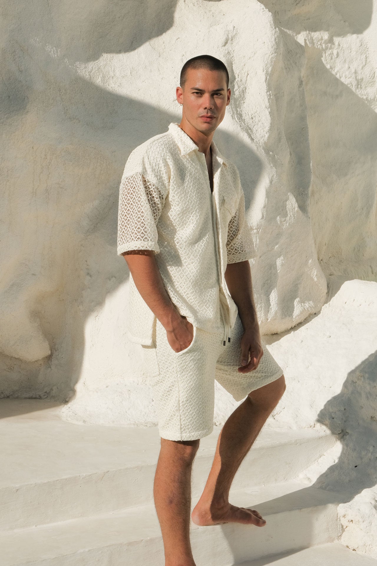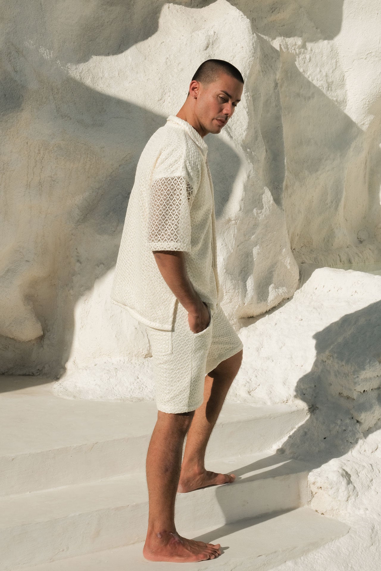 Luxuriate in comfort and style with the Elio Short Ivory Lace. Crafted from a delicate poly cotton lace shell, these shorts offer a touch of elegance to your everyday wear. The lining, made from a soft and stretchy poly spandex blend, ensures a comfortable fit that moves with you