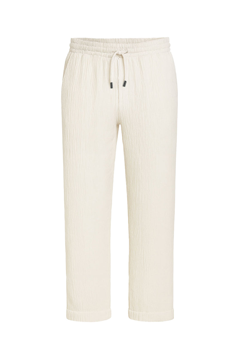 Crafted from premium textured cotton, the APOLLON PANTS deliver exceptional breathability and comfort for everyday wear. The crisp Ivory hue provides timeless versatility, seamlessly transitioning from casual settings to semi-formal occasions.