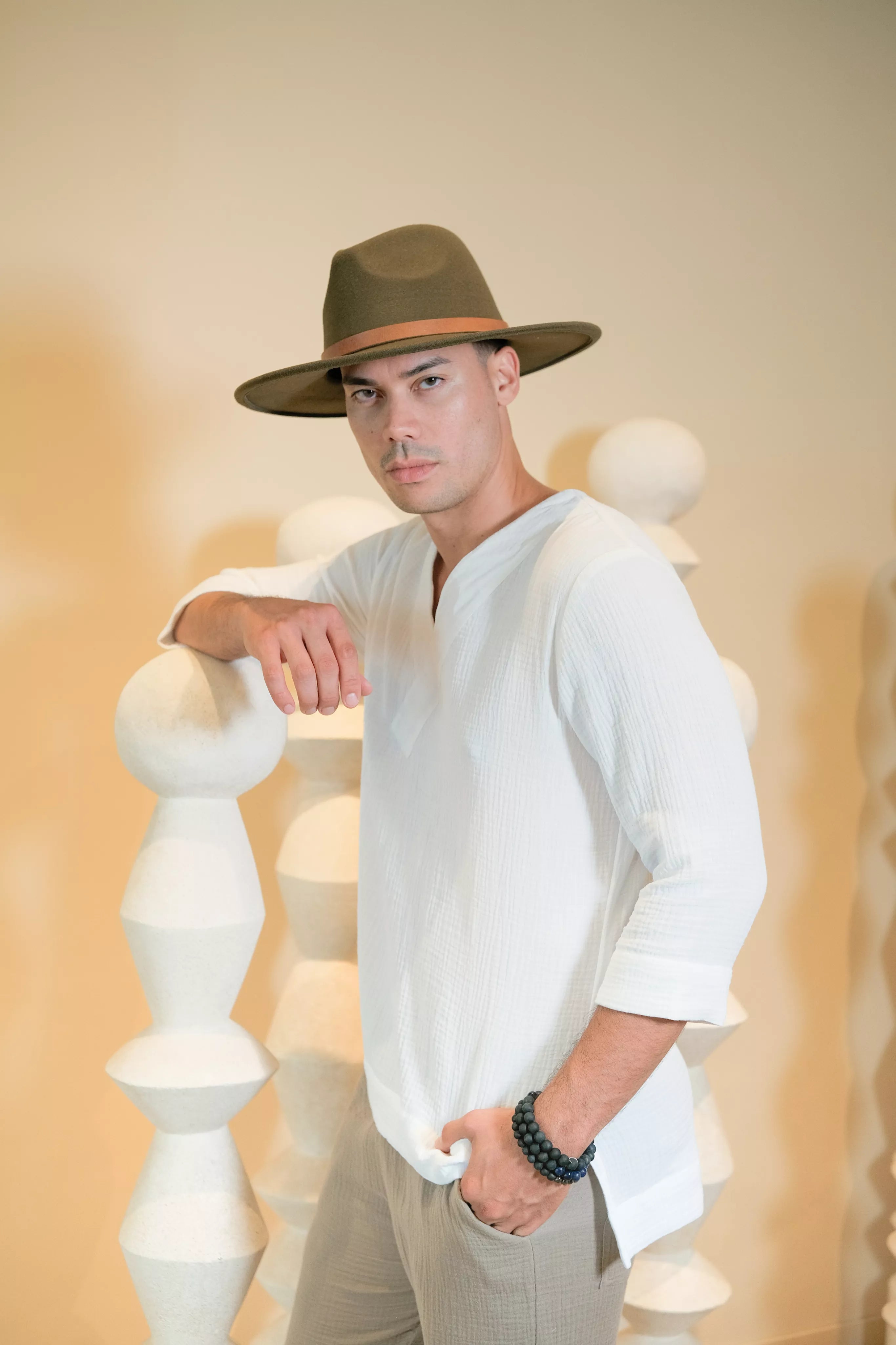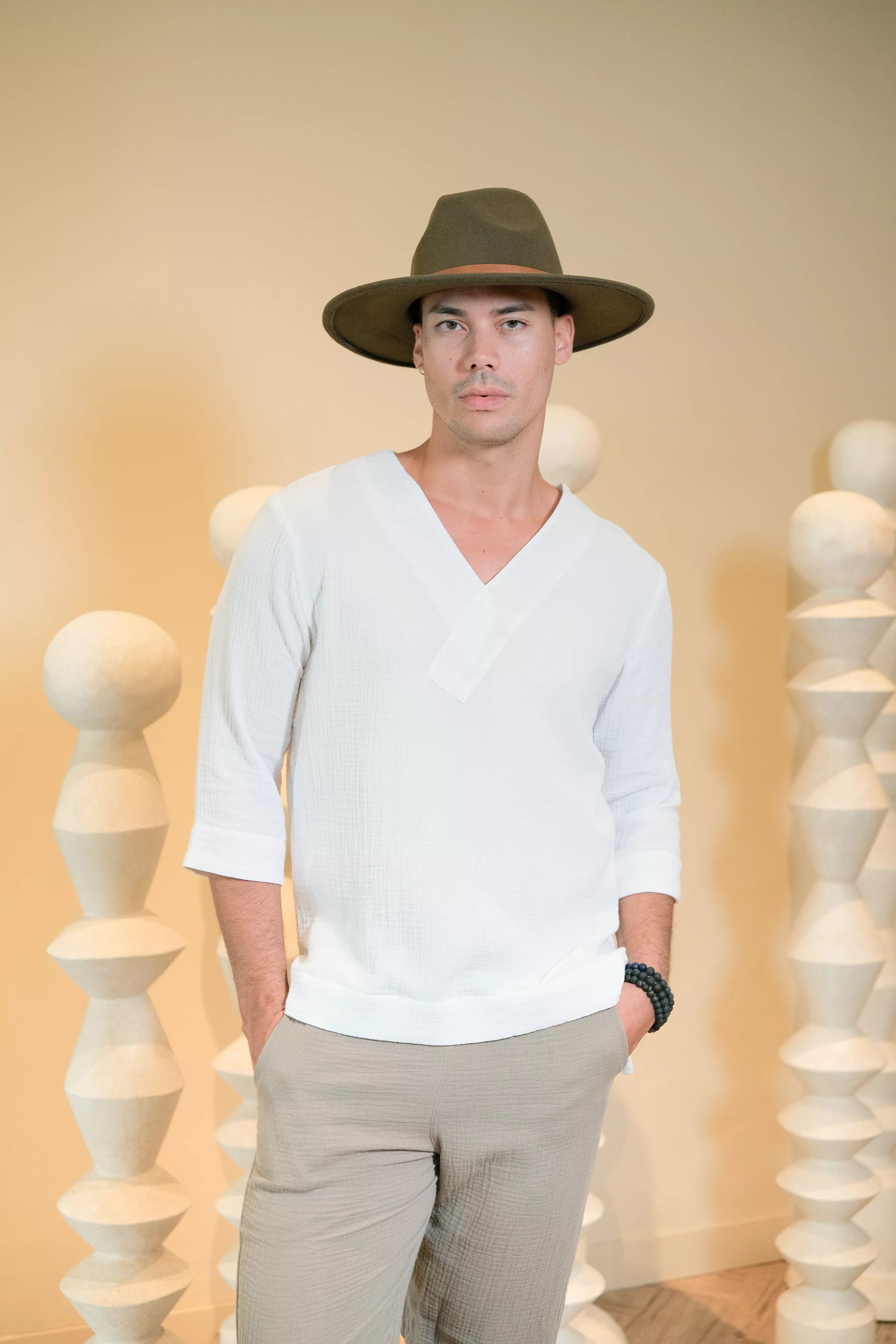 Introducing the JAVIER TOP in White, where comfort meets unique craftsmanship. Made from comfortable and breathable textured cotton fabric, this top is designed for all-day wear. The crisp white color adds a touch of timeless elegance, making it a versatile addition to any wardrobe.