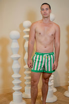 The KANO TRUNK in Soleil Stripes combines sustainability with functionality. Crafted from recycled stretch fabric, this shorter-length swim trunk ensures comfort and eco-awareness for your summer excursions. It offers both practical convenience and unique style for the conscious wearer.