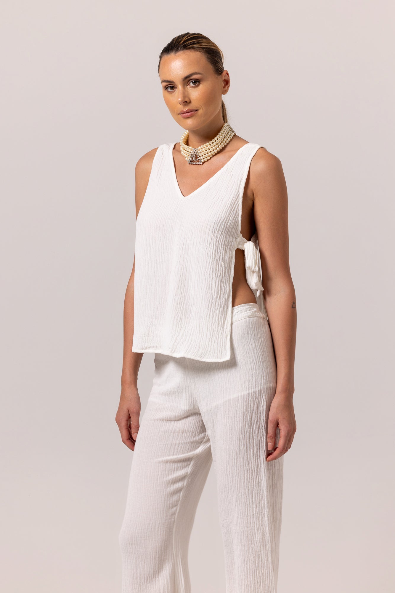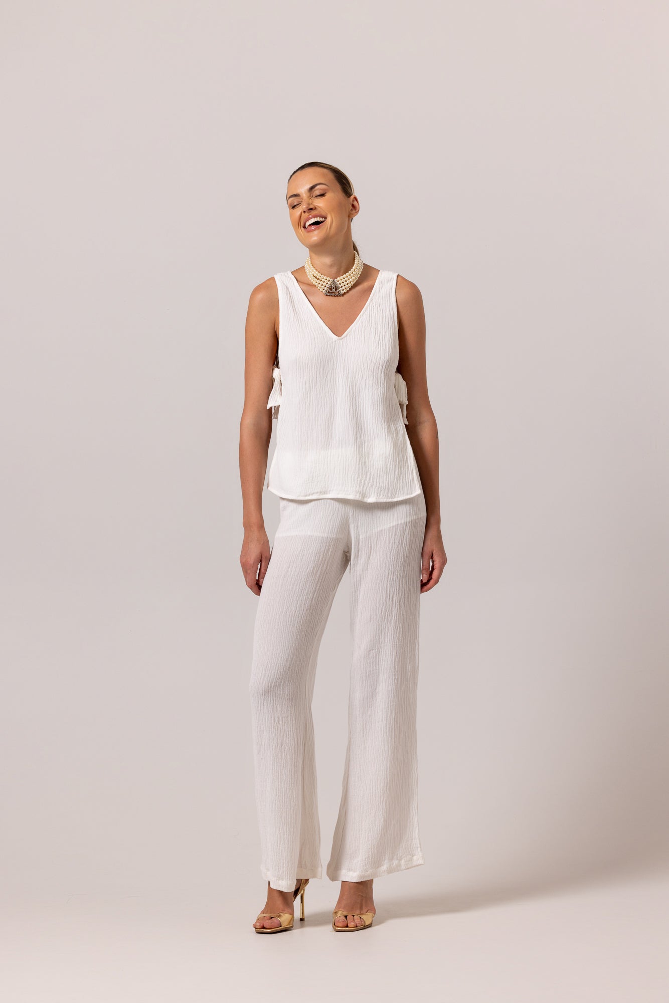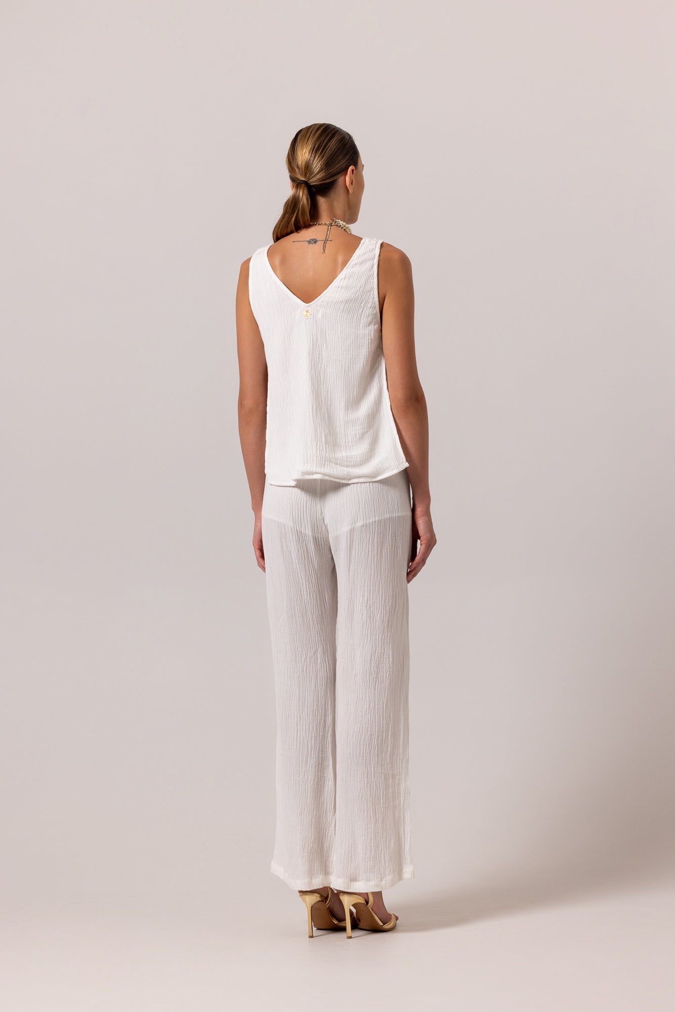 We designed ATHENA pants to all goddesses who looking for the bottom that goes with any of their favorite tops. Made with a ivory color that matches any color and style pairing, the cotton fabric is breathable, lightweight, yet comfortable. Has an elastic waist on the back for a simple and effortless dress-up.