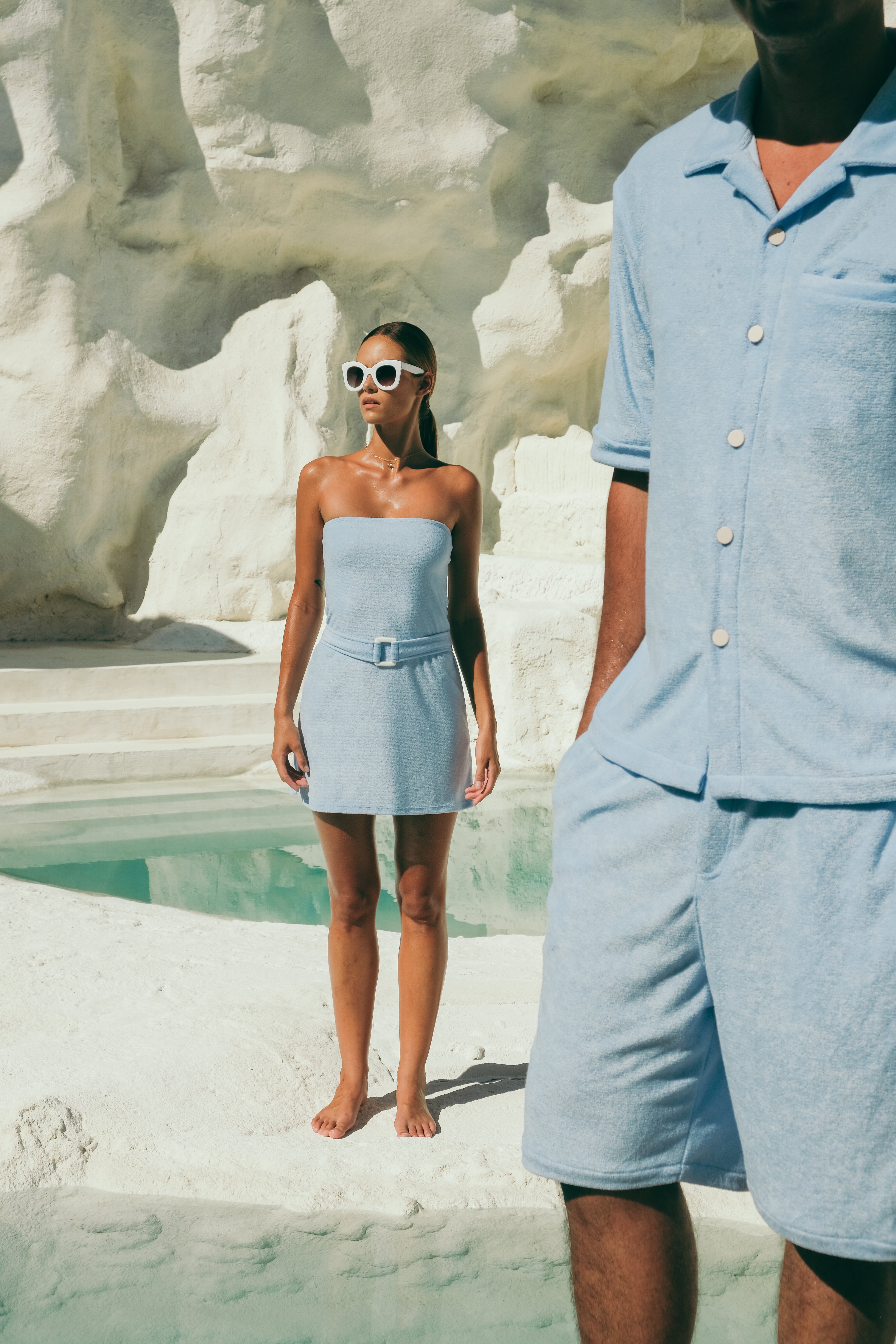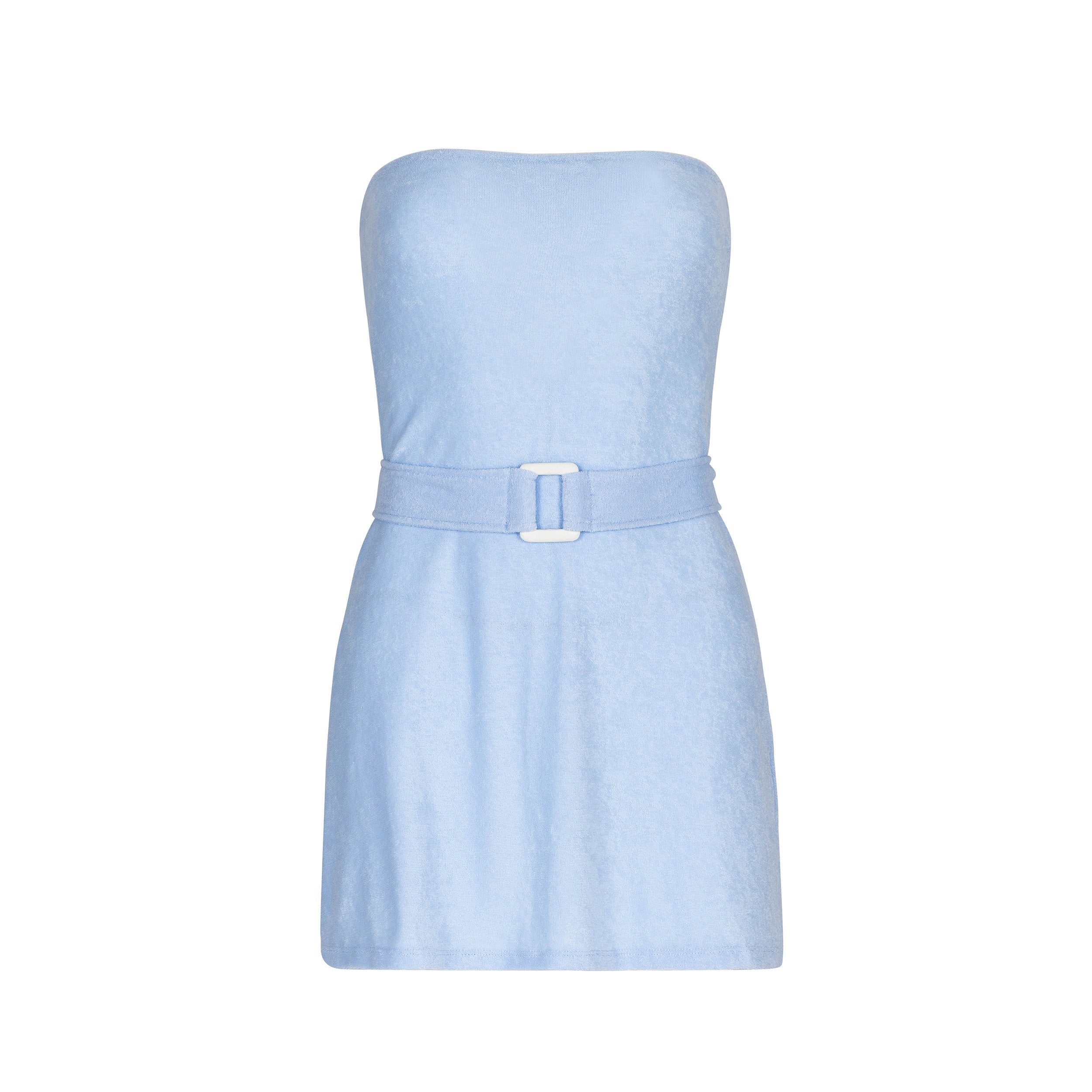 Our CALIFORNIA DREAM Dress is made from comfortable Terry fabric, making it the ideal choice for your perfect summer days. Featuring a bandeau design, finished with a vintage belt, the rich Baby Blue color is sure to make a statement this season.