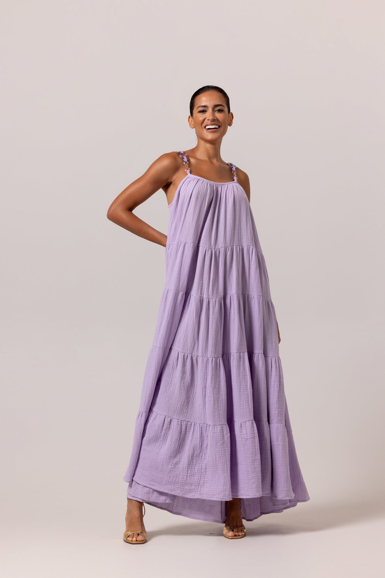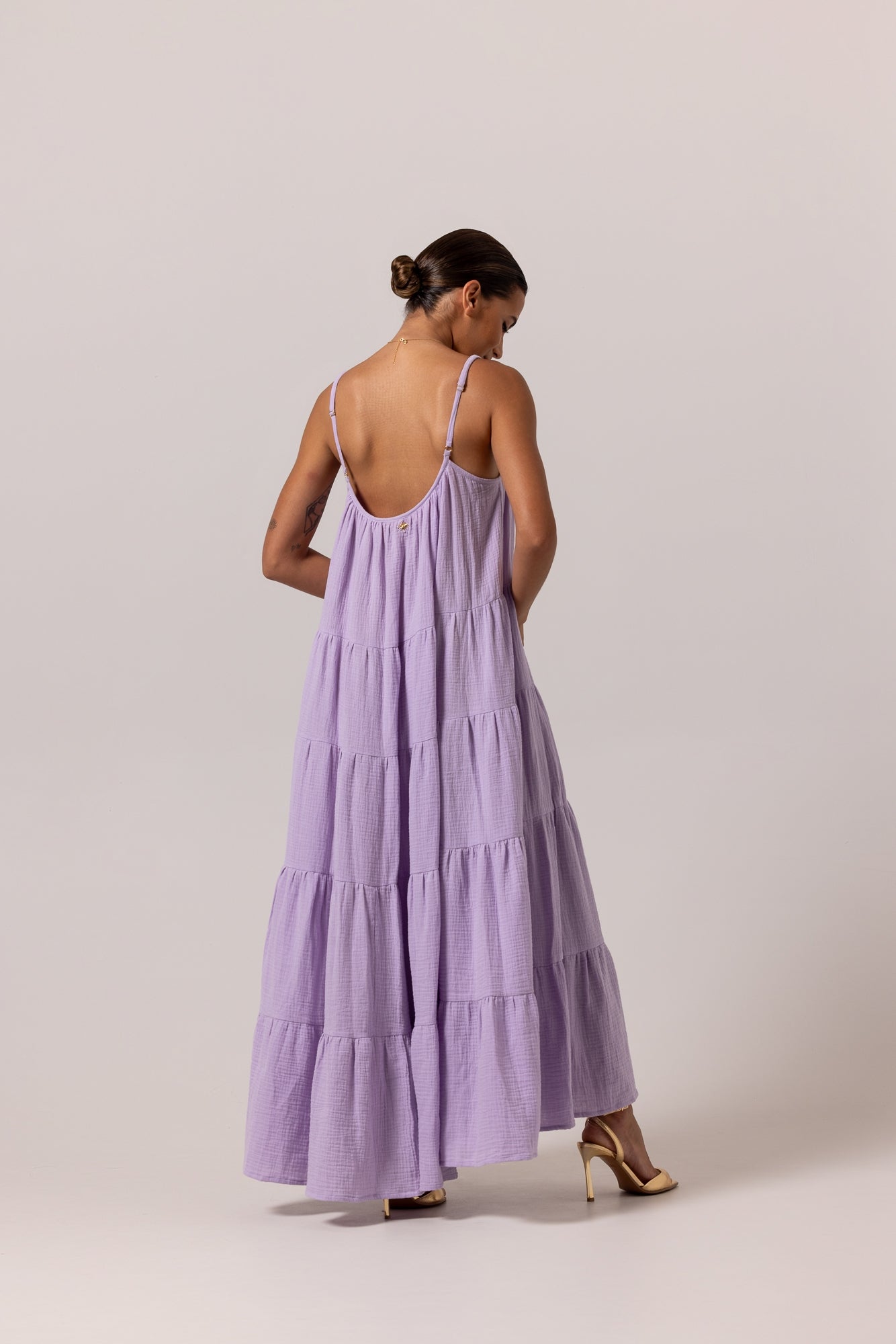 "Show up as scenic as your favorite beach panorama. Maxi CLEO DRESS is designed to dramatically flow as you're moving. The low-cut detail on the back and the thin shoulder straps are intentionally made to emphasize your upper silhouette. Comes in a soft purple, fancy enough for a beach-side photoshoot to a casual party by the pool.