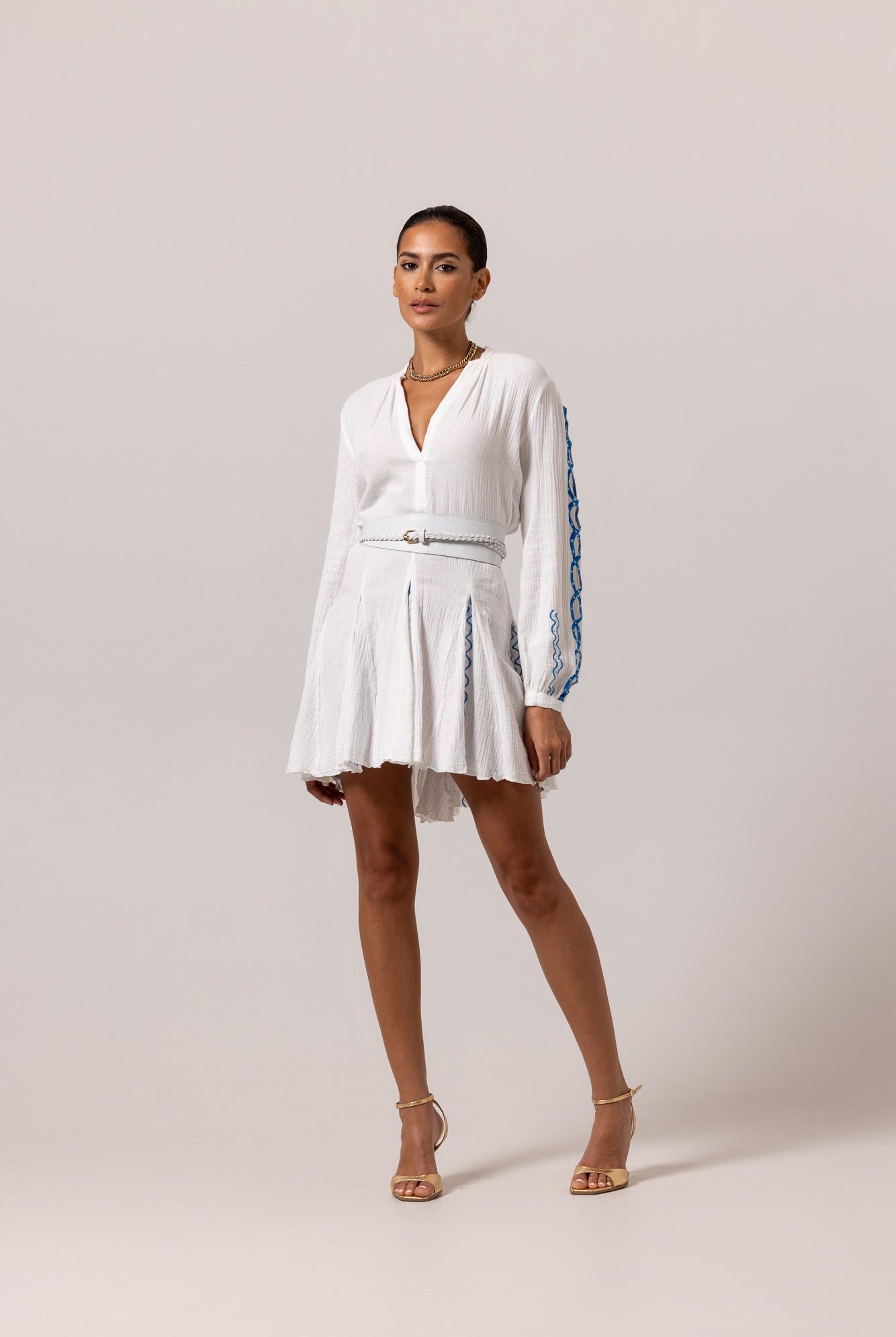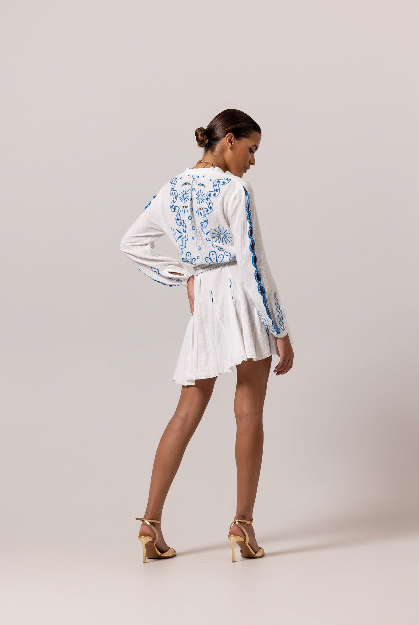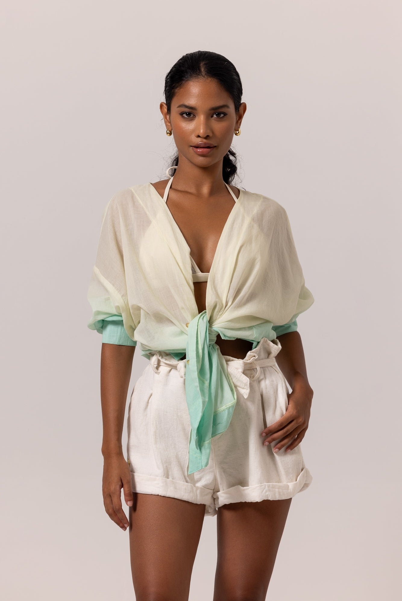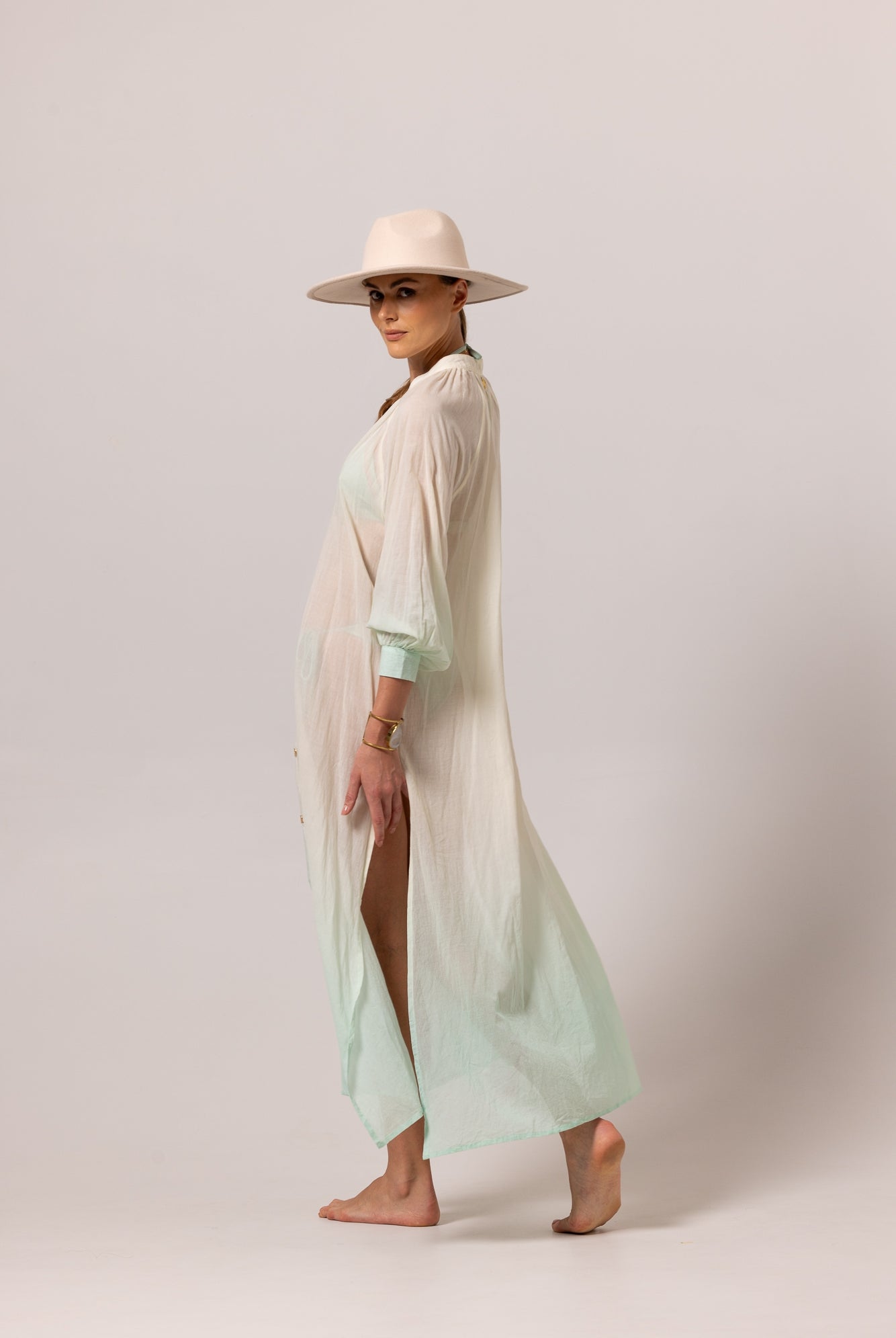 Our exclusive «dégradé color palette» flows like the day itself – delicate morning blues, sunlit aquas, warm corals, and deep golden ambers – capturing the magic of each moment under the sun. This luminous gradient breathes life into luxurious fabrics, flattering silhouettes, and signature details designed for women who embody elegance, freedom, and inner fire.