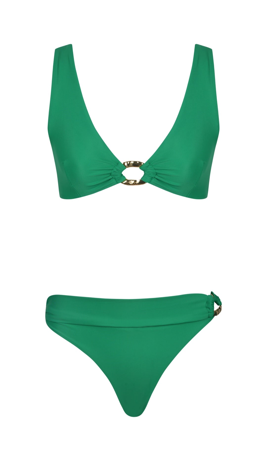 HI GORGEOUS 2P in green bikini is an embodiment of a secure yet gorgeous swimwear you'll ever need in your wardrobe. The top comes with a medium coverage with a flattering V-neckline. The shiny rings accesories on both of the top and panties infuse a fancy accent to your look.