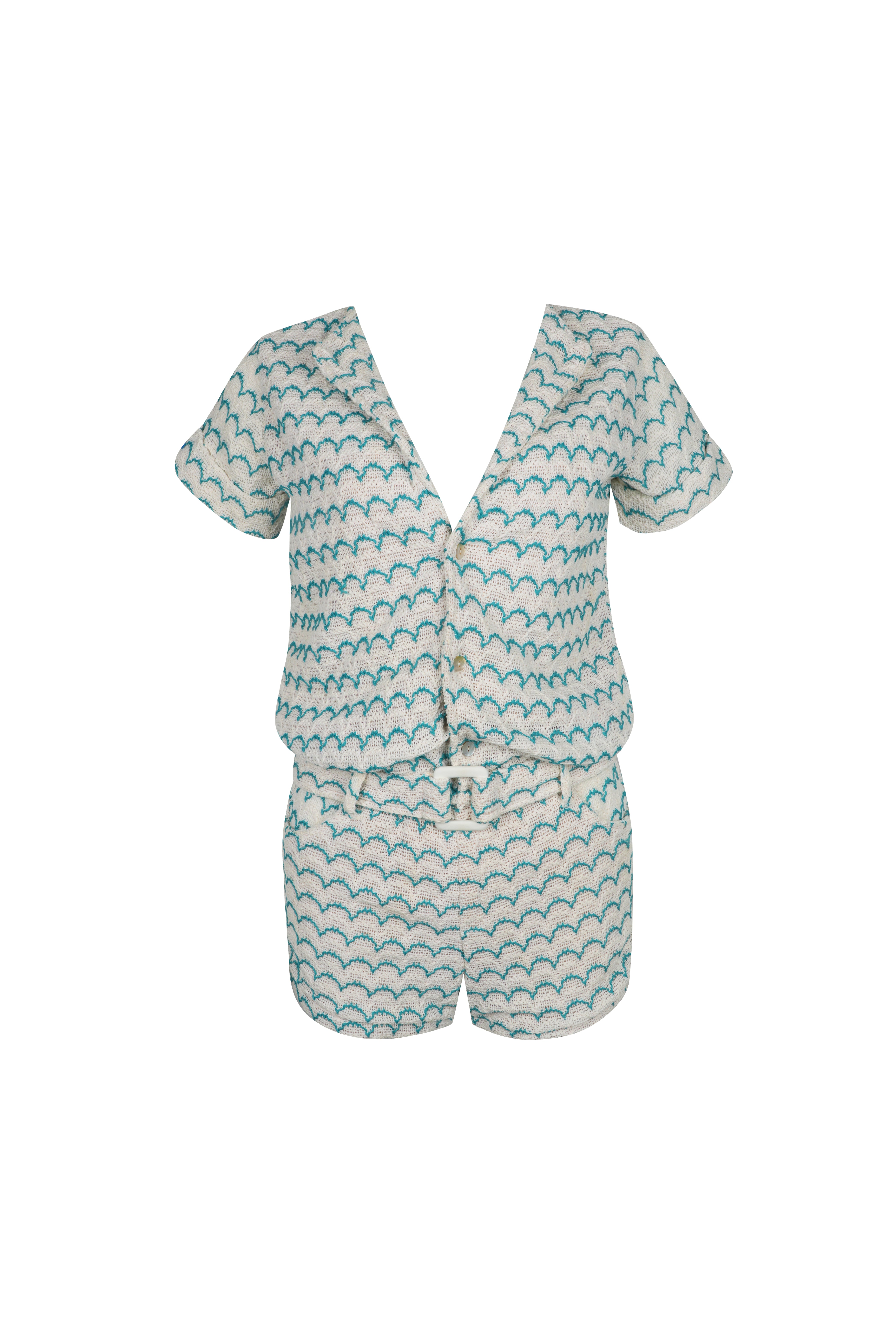 SANTA MONICA Jumpsuit - Knit Ivory Turquoise