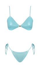SIRI bikini is a statement. With its alluring geometric shape on the top, the triangle silhouette takes on a contemporary chic feel. The low-cut panties, paired with the striking wet blue color, make this two-piece bikini a bold and unforgettable choice for your summer.