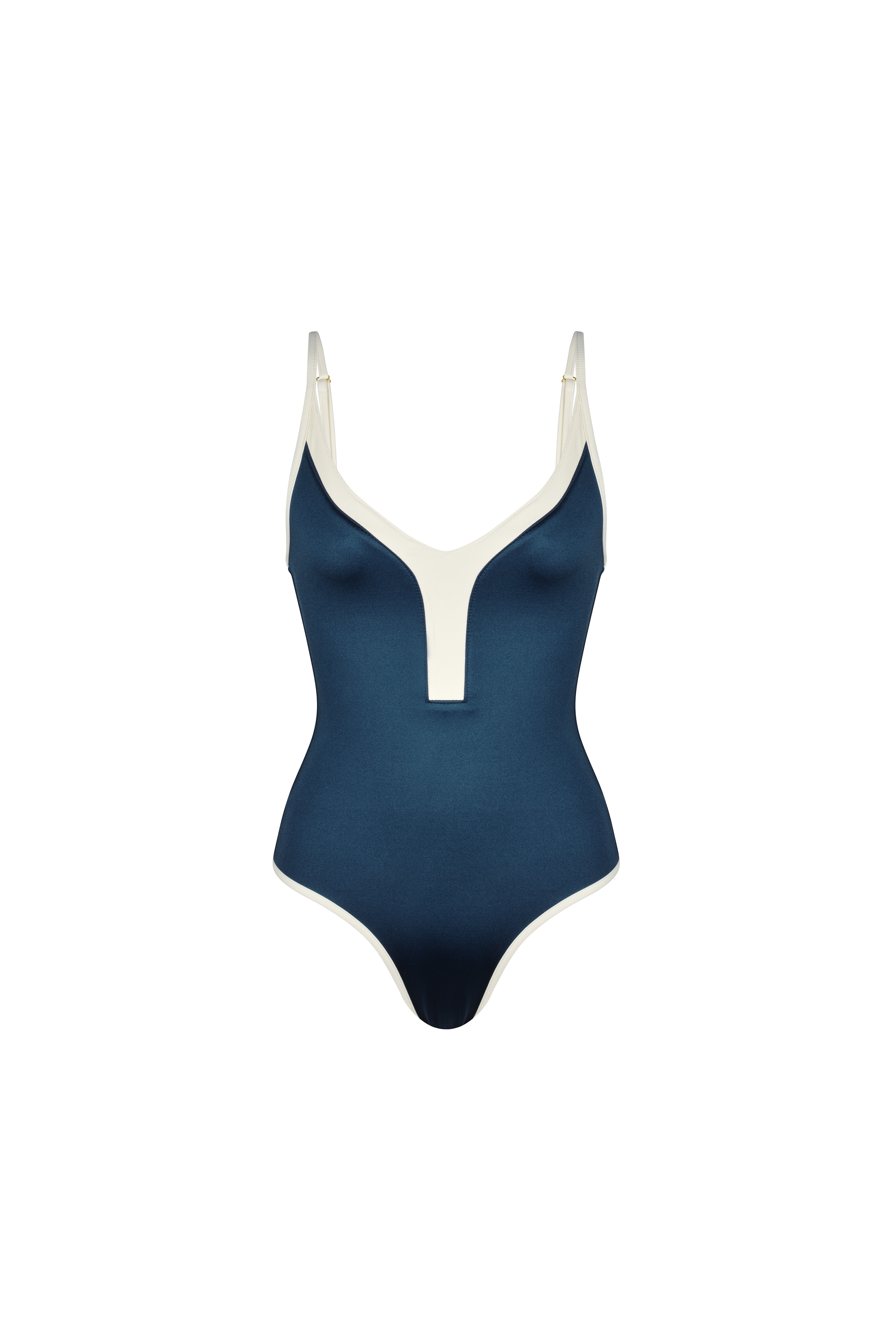 Chanelling your inner Audrey Hepburn with fabulous VERA one-piece. High-leg cut and adjustable thin straps to flatter your curves. Comes in a sophisticated CALEDONIA blue with ivory white hems, this one will give moderate coverage while celebrating your feminine shapes.