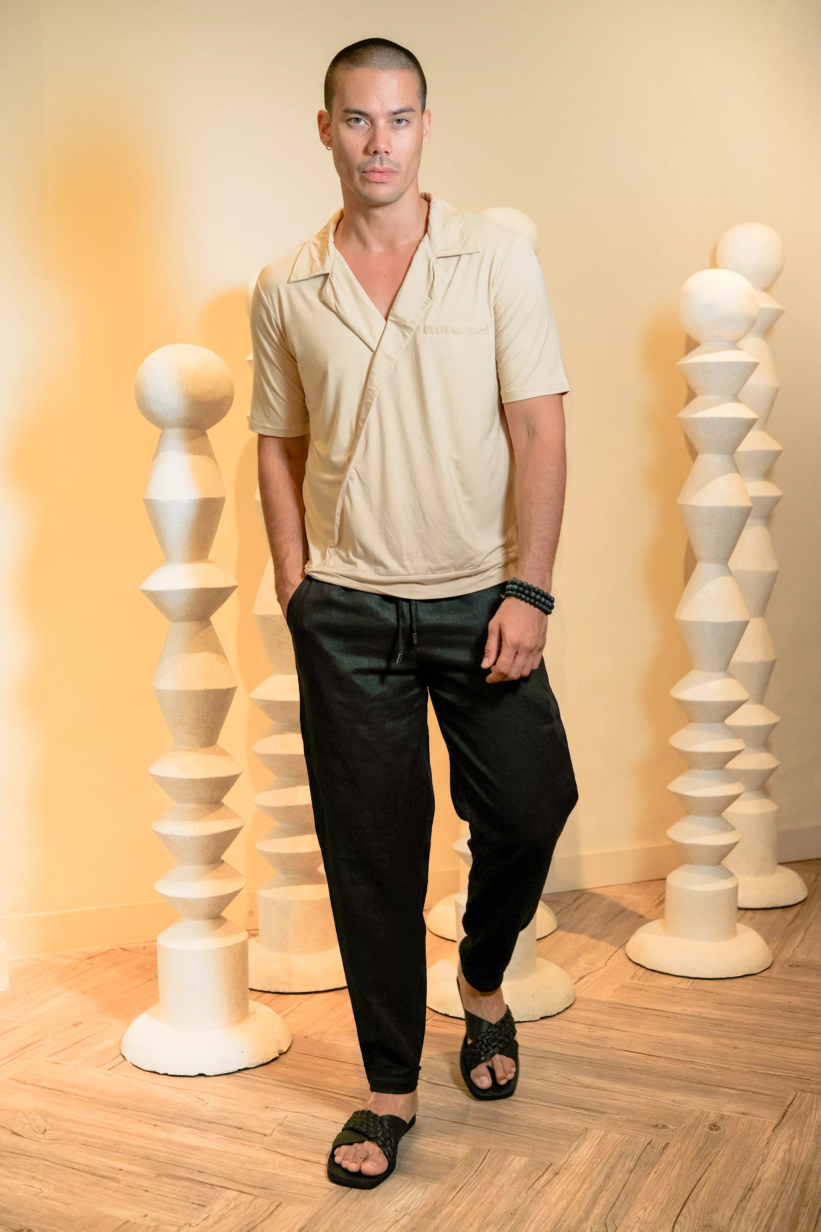 The BRADY Top features a modern notched lapel for a polished look, while the buttonless front offers a clean, contemporary silhouette. The faux breast pocket enhances its stylish appeal, providing a subtle yet impactful detail.
