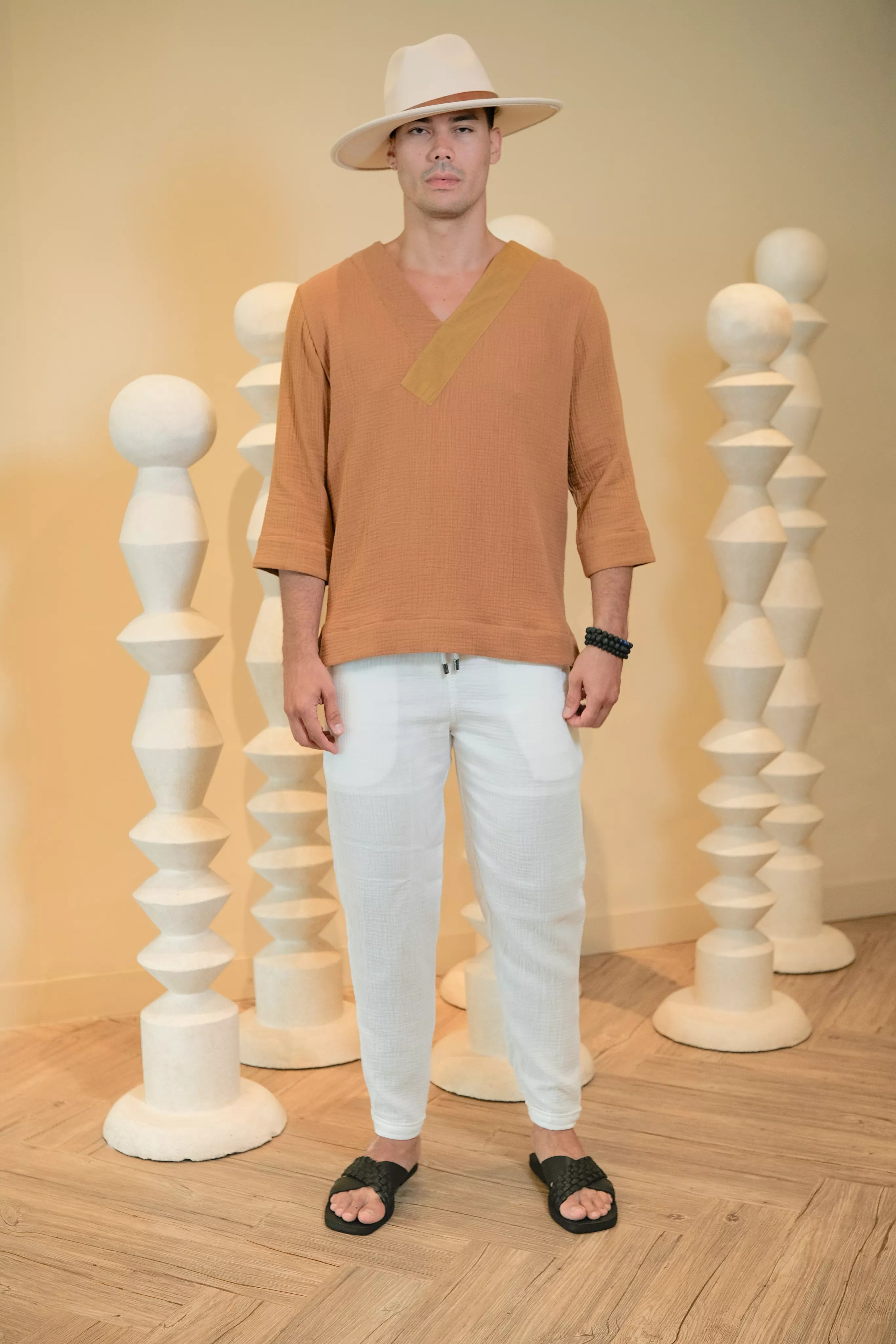 Discover the perfect blend of comfort and style with the GABRIEL PANTS for Men in White. Crafted from breathable and comfortable textured cotton fabric, these pants are designed for all-day wear. The classic white color adds a touch of timeless elegance, making them a versatile addition to any man's wardrobe.