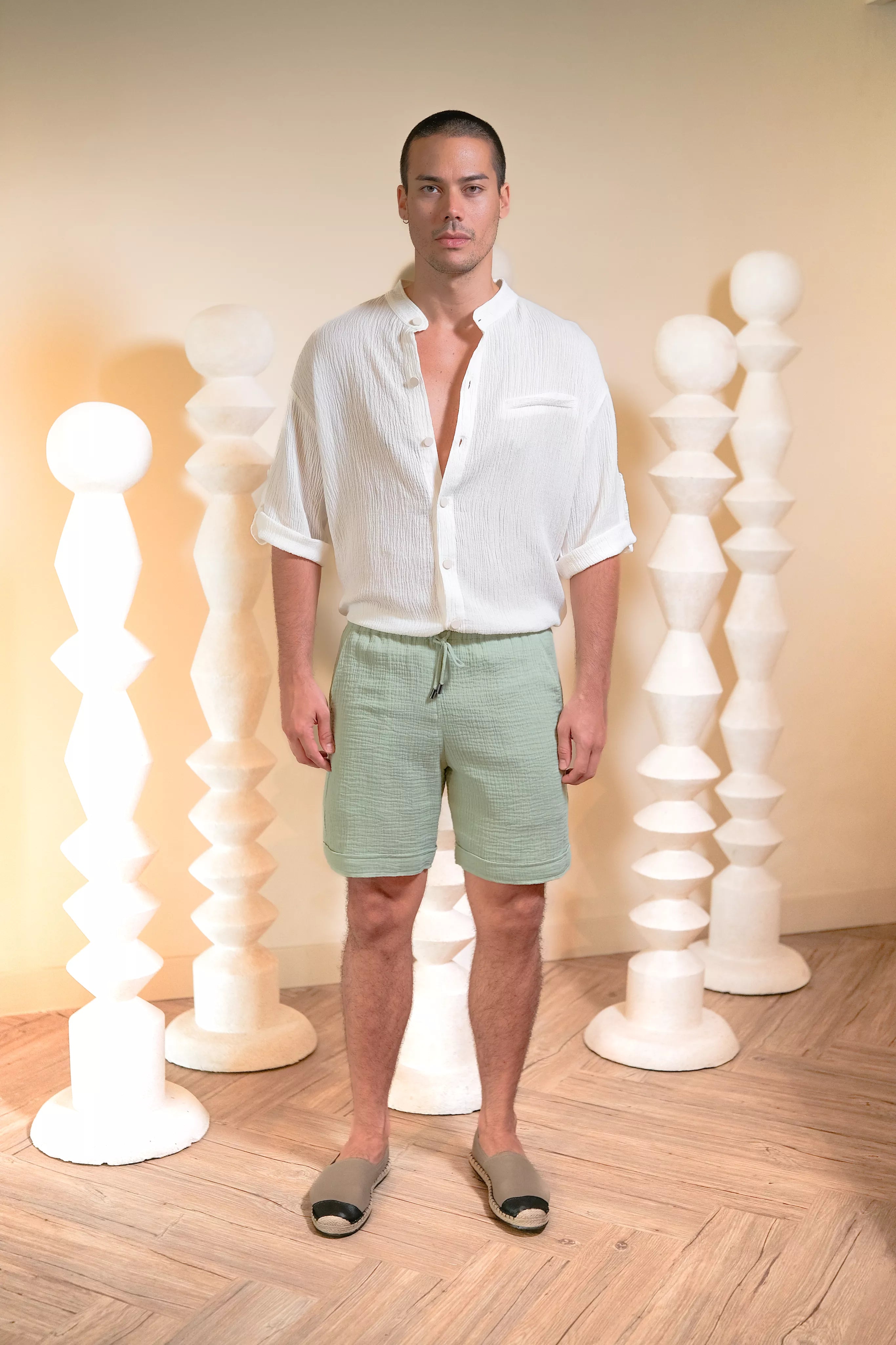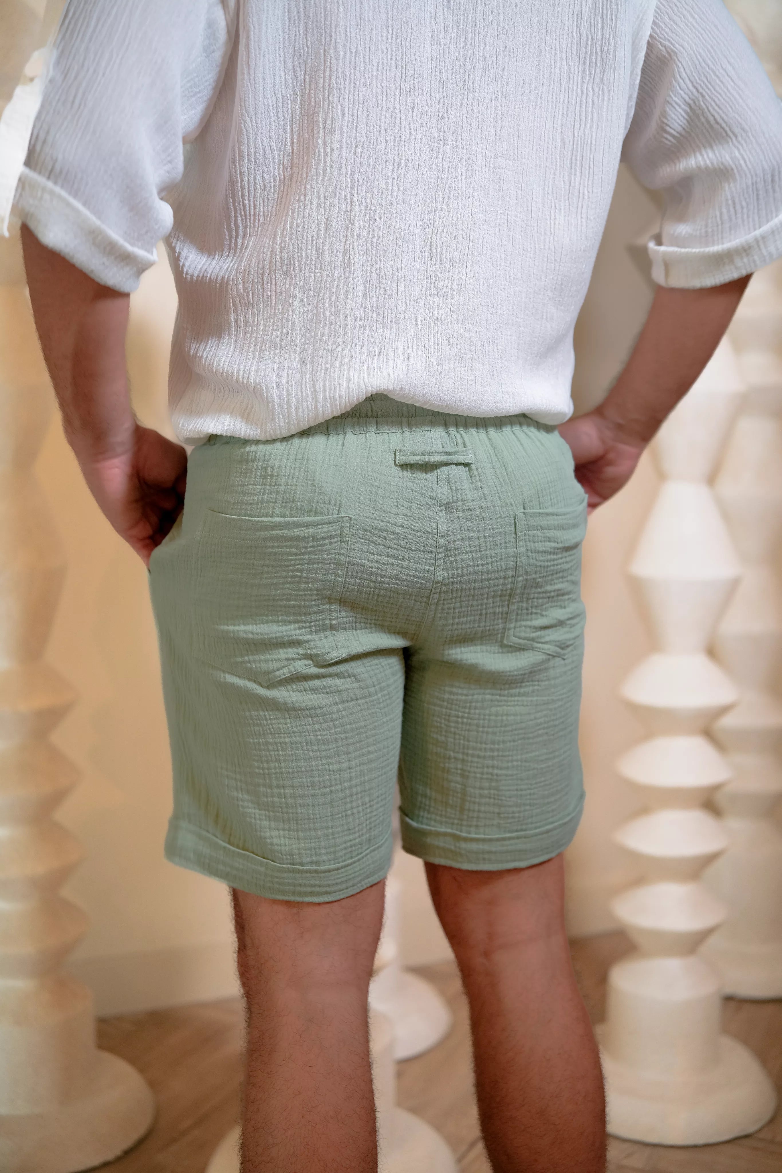 Embrace a refreshing look with the GABRIEL SHORT in MINT, breathable textured cotton shorts for men.