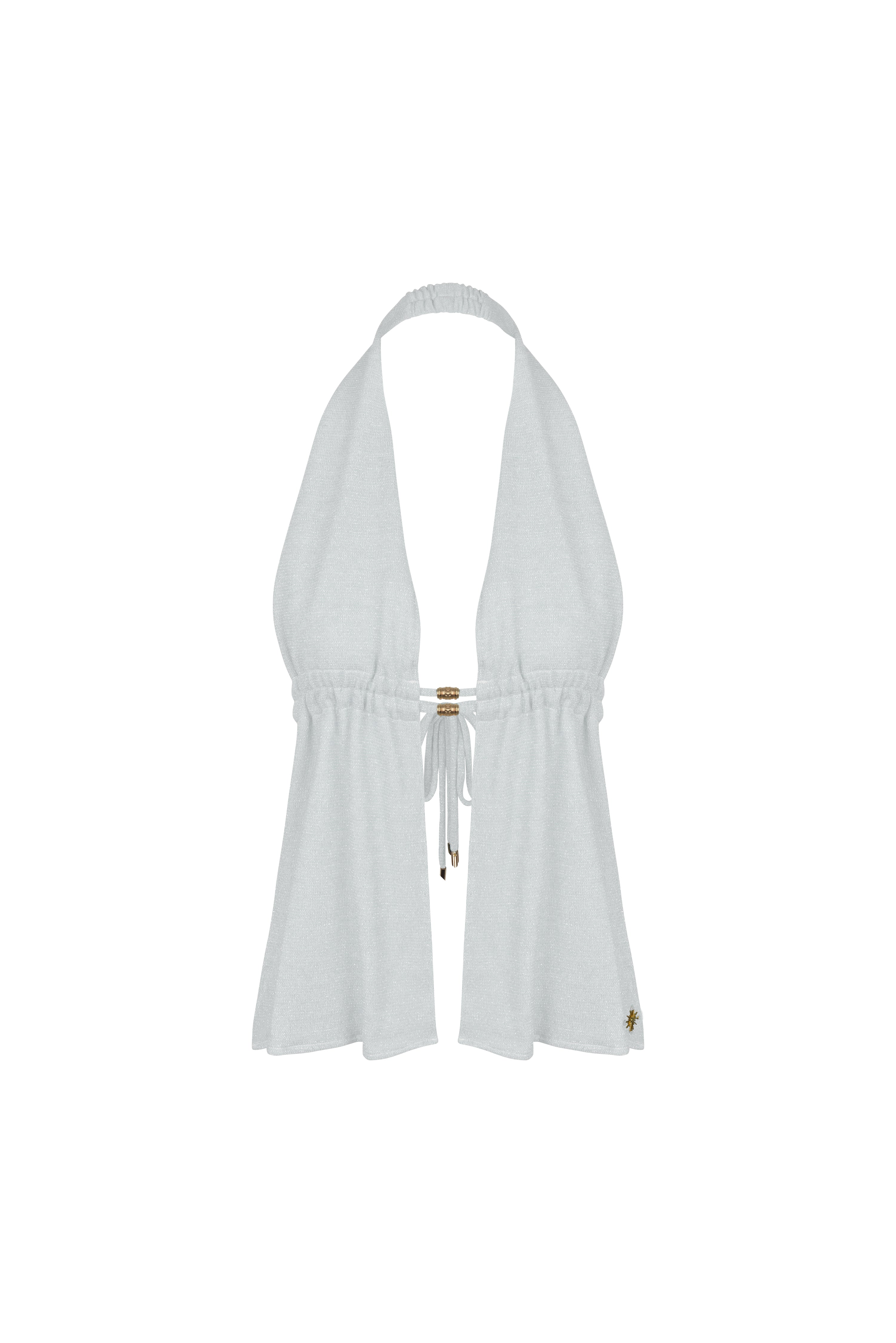 Stand out in the crowd this summer night never gets this easy with MATAHARI top. Designed exclusively with lustrous Winter White Lurex in a flattering halter neck and open front silhouette. Let you feel the warm breeze in style.